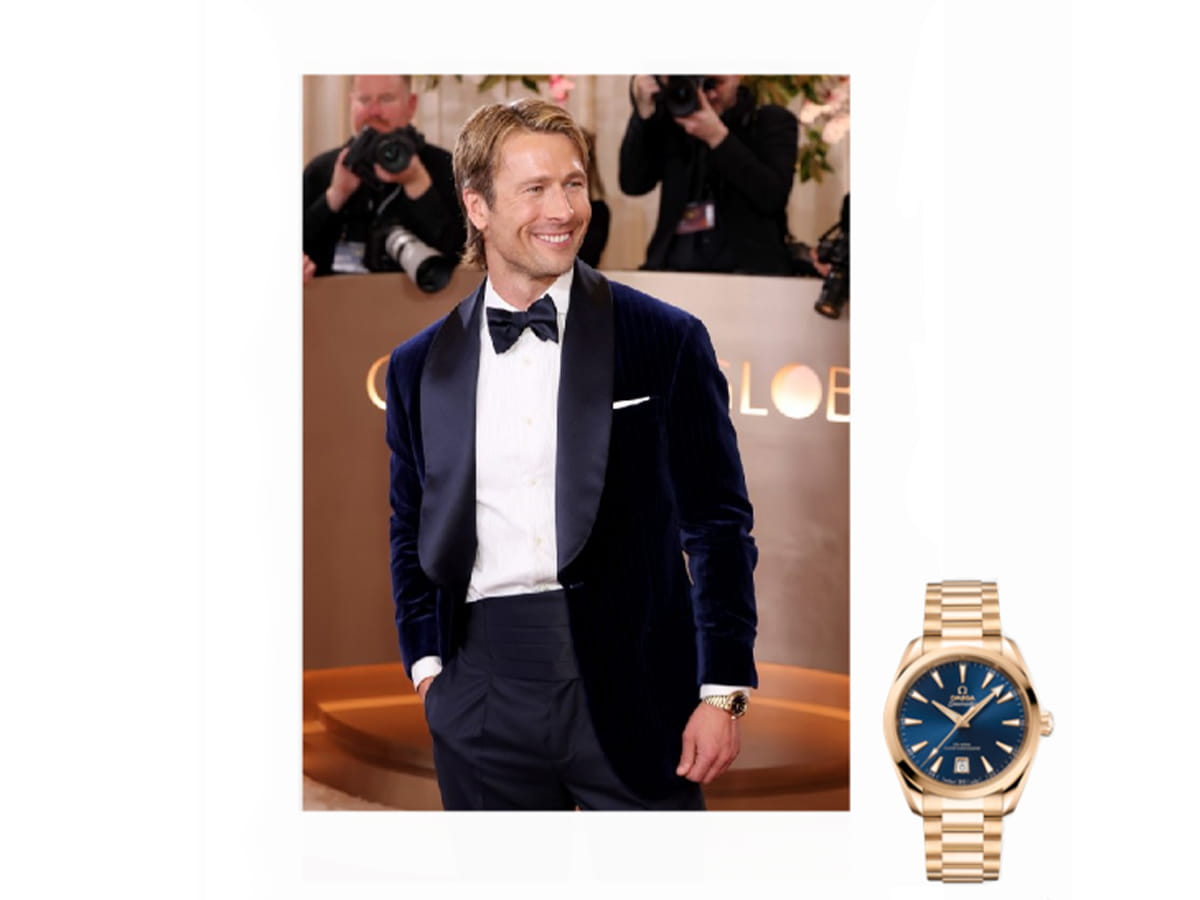 Nominated for Best Performance by a Male Actor in a Television Series – Musical or Comedy for his role in “Chad Powers”, OMEGA Ambassador Glen Powell wore a 38 mm OMEGA Seamaster Aqua Terra in 18K Moonshine