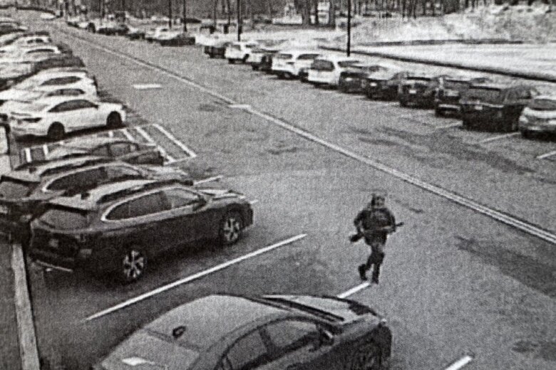 An image from documents filed in U.S. District Court shows a figure running toward the U.S. Capitol while holding a shotgun. Prosecutors say that figure is 18-year-old Carter Camacho. (Courtesy U.S. District Court in D.C.)