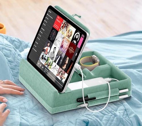 A Foldable & Adjustable Tablet Pillow Stand With Hidden Storage